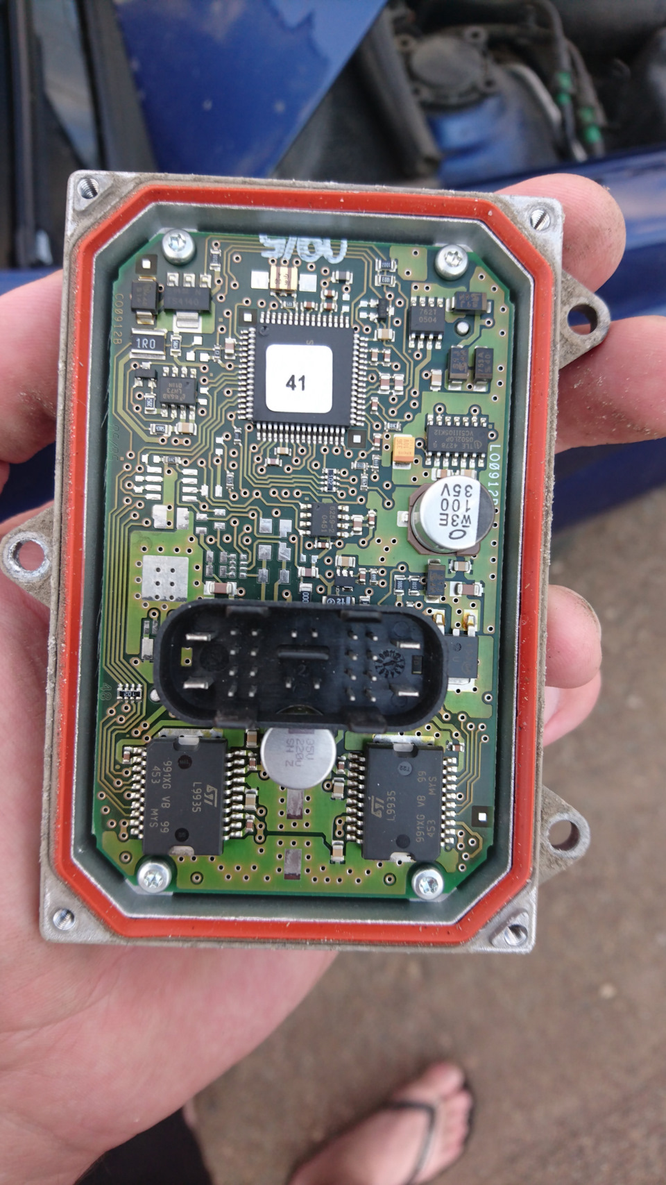 Решил лесть в фару, левую, поскольку ошибки изначально были по ней. Начал с разъема, окислов или влаги в нем не было, полез дальше, открыл крышку фары, посмотрел, что ничего не болтается, не задивает, линза ездит если крутить шестерни руками. Далее вскрываю блок управления.
