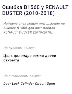 Найдена следующая информация по ошибке B1560 для автомобиля RENAULT DUSTER (2010-2018):