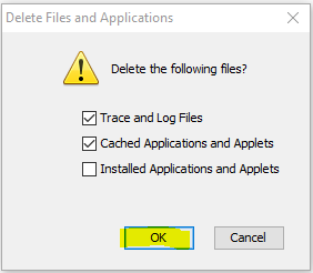 This will clear the Java Cache. Once the Java Cache is cleared we were able to open the forms screen without any issue.