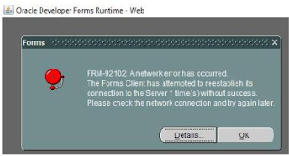 I’m deploying a forms 9i application on the intranet. I’m using Oracle Application Server Forms and Reports Services 9.0.4 under Red Hat Linux AS 4.0, along with an Oracle 9i Database on another server (actually multiple databases, used for benchmarking). Every time I connect from a remote PC on the network under Windows XP Pro or Windows 2003 Server, after a few seconds or minutes, I get the error message: FRM-92102 — A network error has occured after …