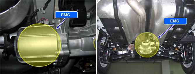 EMC(=Electric Magnetic valve Clutch)distributes proper torque to front wheel by controling amount of current inside EMC coil.