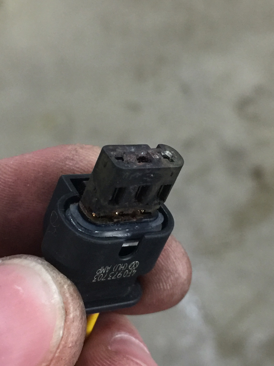 Для многих не секрет, что в свежих моделях авто свойственны протечки антифриза в разъемы, ну тут как раз классический пример. Антифриз способствует разложению, коррозии контактов в разъеме в отличии от аналогичных ситуаций но при протечке масла.