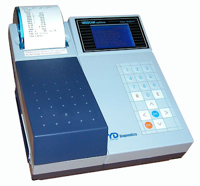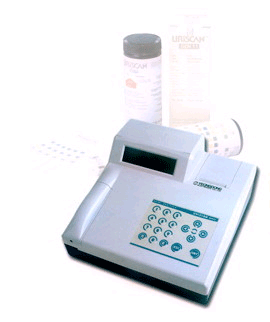 - «Uriscan» с опциями простого и углубленного анализа, оценивающий состав мочи по 13 параметрам, способен за 60 минут обработать более 700 образцов биоматериала. Компактная модификация – «Uriscan Optima».