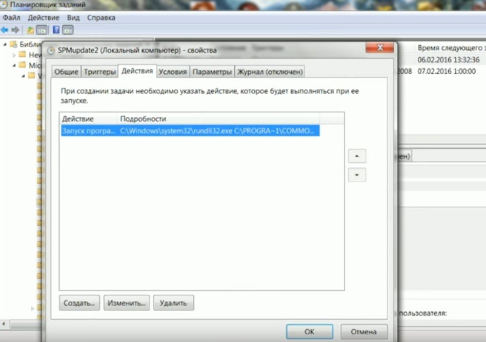- Перейти на вкладку «Действия». Нажать левой кнопкой мыши два раза по задаче.