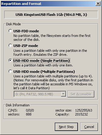 : Auto Format it with FBinst, FAT 32, align, Copy BPB (так, как показано в прямоугольнике-2 на скрине ниже). Этим самым мы отформатируем и приведем флешку к загрузочному типу.
