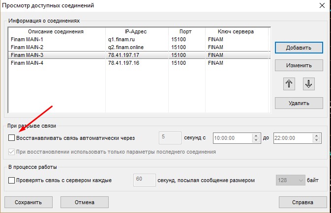 Рекомендуем установить автоматическое переподключение системы при обрывах