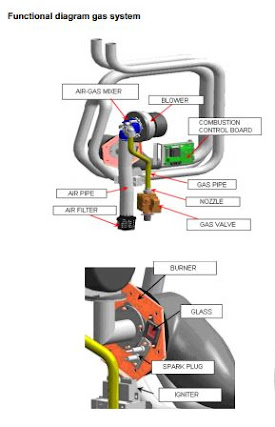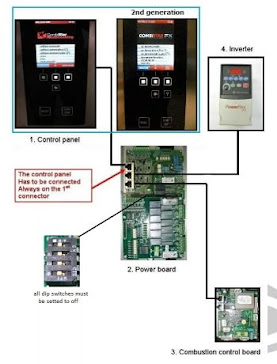 components: CPU board, power board, inverter, combustion control board. It is required to