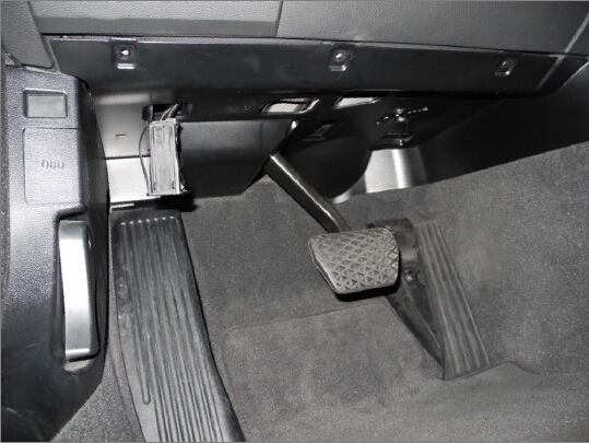 The best way to find out MOST connection is to ‘get your hands dirty’. First you should check for a square shaped cap/cover about 4x4cm size on the plastic cover above the feet pedals. If it is there, then you can get a flat head screw driver and pry it open gently from the inner side(the side that you cannot see easily). Doing so, it will allow you to pull down the MOST interface cover/adapter/connector assembly.