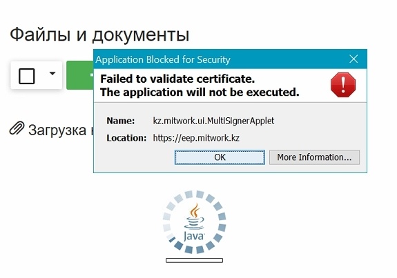 При попытке загрузить файлы на Портал может возникнуть следующая ошибка Java: