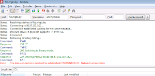 Возникла такая проблема с подключением из внешней сети: не удается подключиться по ftp через FileZilla. При этом подключение из внутренней сети через FileZilla производится. Кроме того подключение из внешней сети через Total Comander, браузер или с помощью инструментов Windows осуществляется.ЛОГ: