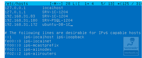 А теперь вспоминаем, о чем было сказано несколько раньше. Клиентом сервера СУБД является сервер 1С, но никак не клиентский ПК, следовательно запись нужно добавлять на сервере 1С:Предприятие в файл/etc/hosts на платформе Linux или в C:WindowsSystem32driversetchosts на платформе Windows.