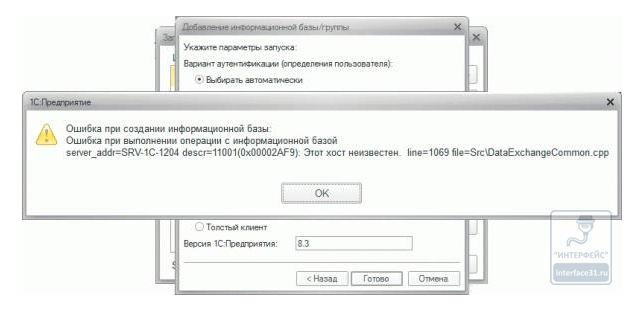 Ошибка при выполнении операции с информационной базойserver_addr=NAME descr=11001(0x00002AF9): Этот хост неизвестен.