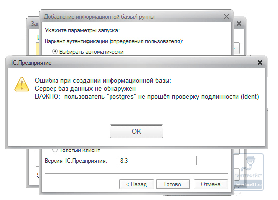 Сервер баз данных не обнаруженВАЖНО: пользователь «postgres» не прошёл проверку подлинности (Ident)
