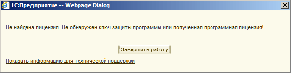Ошибка может возникать как при создании базы, так и при запуске информационной базы.