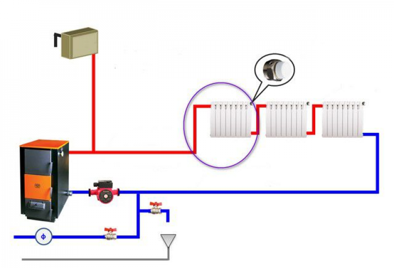 - Такая схема после модернизации дает возможность регулировать и изменять температуру нагрева каждого прибора в ней, без последствий для остальных элементов, подключенных к системе.