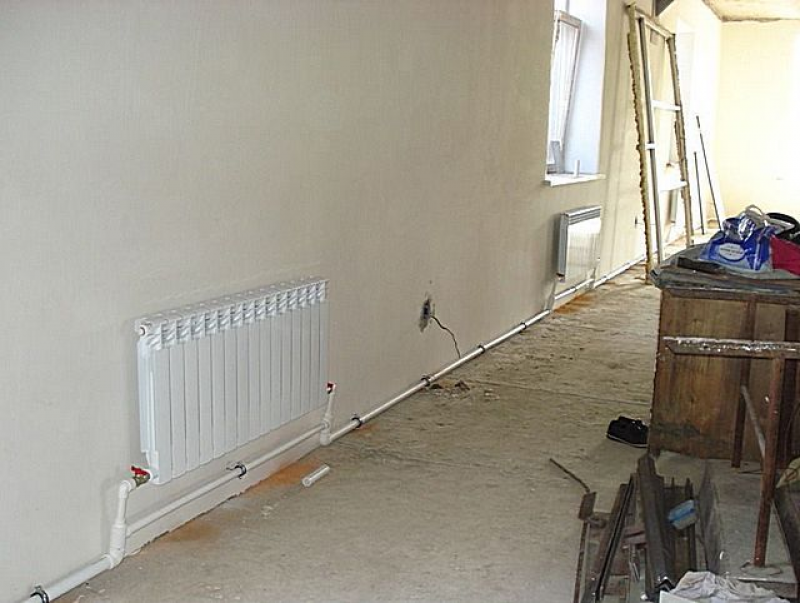 Фото радиатора подключенного к сети с горизонтальной разводкой