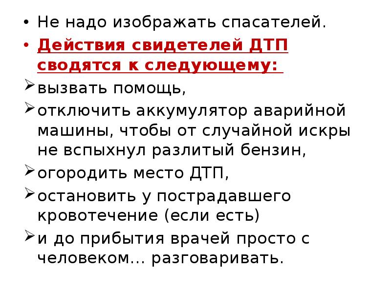 При ДТП вообще не шевелите пострадавшего и не вытаскивайте его из машины самостоятельно. Так можно сделать ему только хуже. Нарушить это правило можно лишь в экстренном случае, например когда машина горит. Вот как НАДО действовать:
