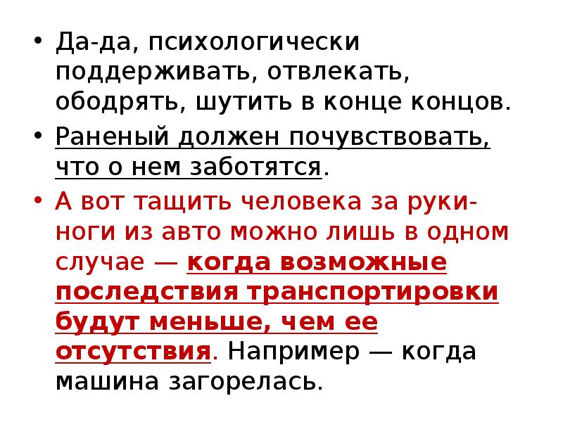 Перетаски-вайте самостоя-тельно человека с возможны-ми травмами -