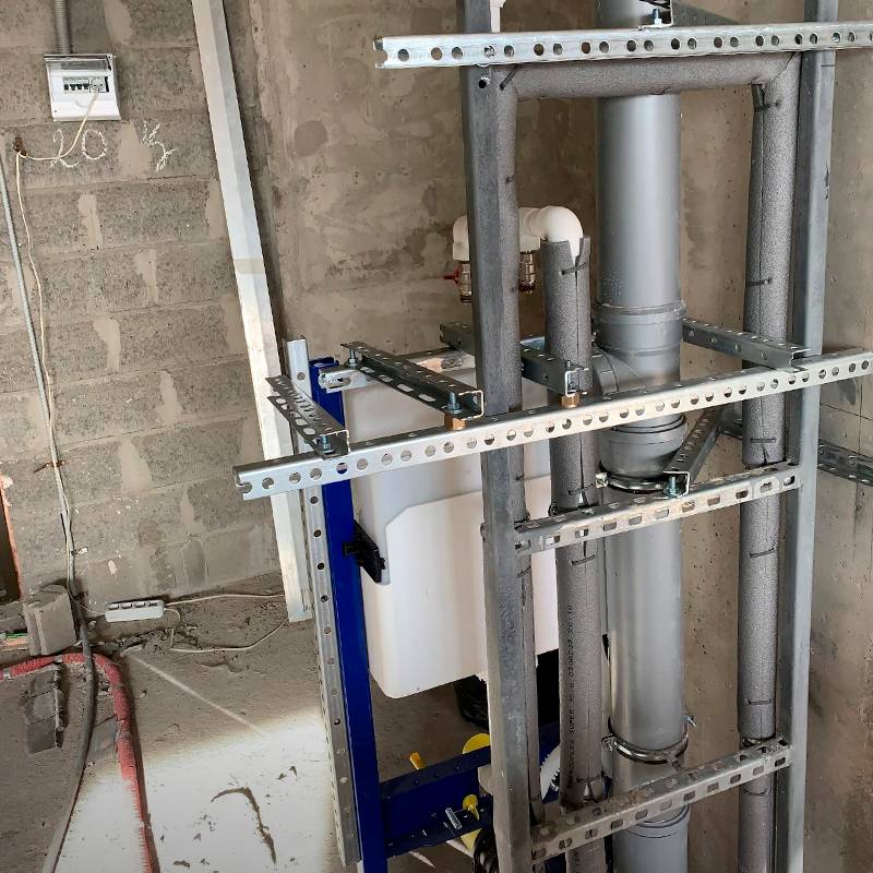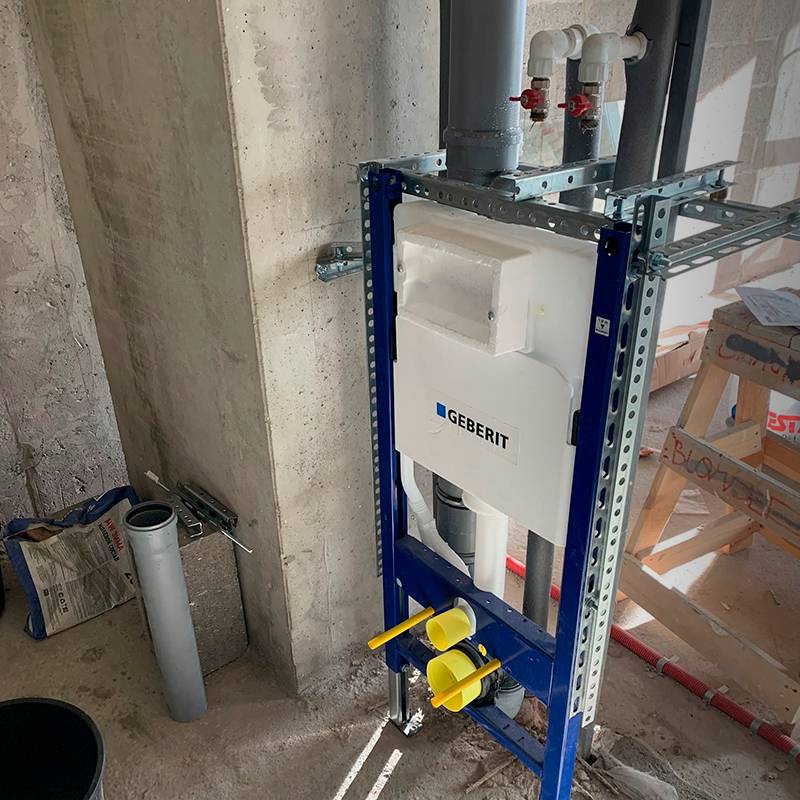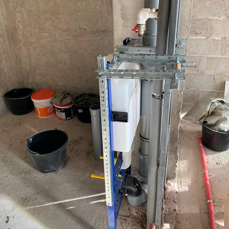 К бачку подводят холодную воду, а в нижней части каркаса на специальный кронштейн крепится отводящий патрубок канализации. Инсталляцию можно крепить к крепкой несущей конструкции или интегрировать ее в металлический каркас.