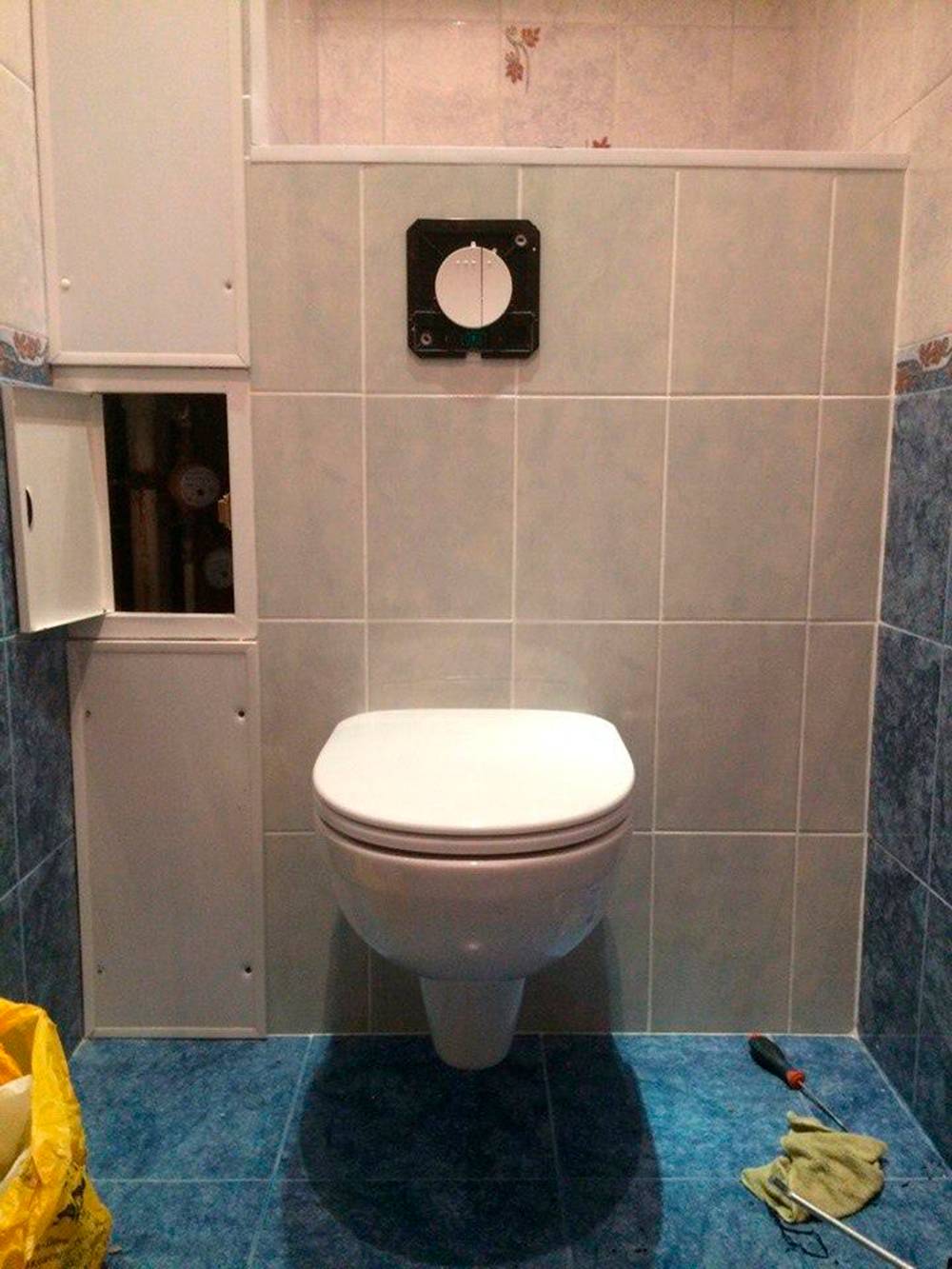 Остальные конструкции унитазов — это варианты сочетаний узлов от напольного и навесного унитаза. Например, я много раз устанавливал напольные унитазы со встроенным в стену бачком, который идентичен бачку инсталляции.