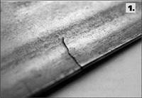 1. Такие трещины часто возникают из-за неправильной установки роликов поддержки пилы (направляющие ролики). В данном случаи тыльная сторона пилы во время работы постоянно трется о борт ролика.