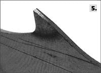 4 и 4а. Нулевой угол атаки – лента во время работы сильно дребезжит, что приводит к вибрации пилящей головы. В этом случае на теле пилы появляются трещины в месте, обозначенном кругом.
