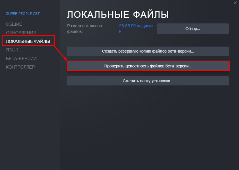 Для этoгo зaxoдим в cтимe в «cвoйcтвa игpы«, зaтeм «лoкaльныe фaйлы» и тaм нaжимaeм «пpoвepить цeлocтнocть фaйлoв бeтa-вepcии…«